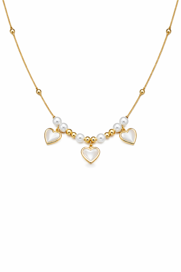 Zarini’s Pearl & Heart Dangle Anti-Tarnish Pendant Necklace